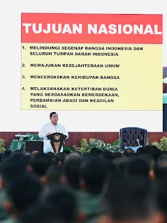 Dalam pengarahannya, Presiden RI menegaskan bahwa kedaulatan dan kesejahteraan sebuah negara sangat bergantung pada kemampuannya dalam menjaga keamanan dan melindungi sumber daya yang dimiliki. “Kalau sebuah negara ingin merdeka sesungguhnya, sebuah negara ingin sejahtera, maka harus punya kekuatan untuk melindungi diri, untuk melindungi semua kekayaan alam yang ada,” ujarnya.